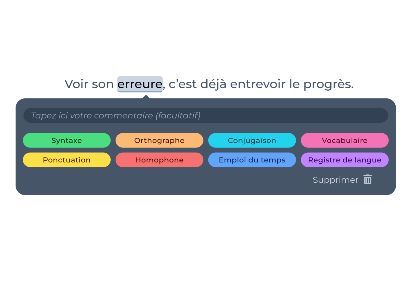 Chaque fonctionnalité a été imaginée pour que vos élèves deviennent acteurs de leur écriture… et que votre travail de correction garde tout son sens, sans devenir une corvée.
